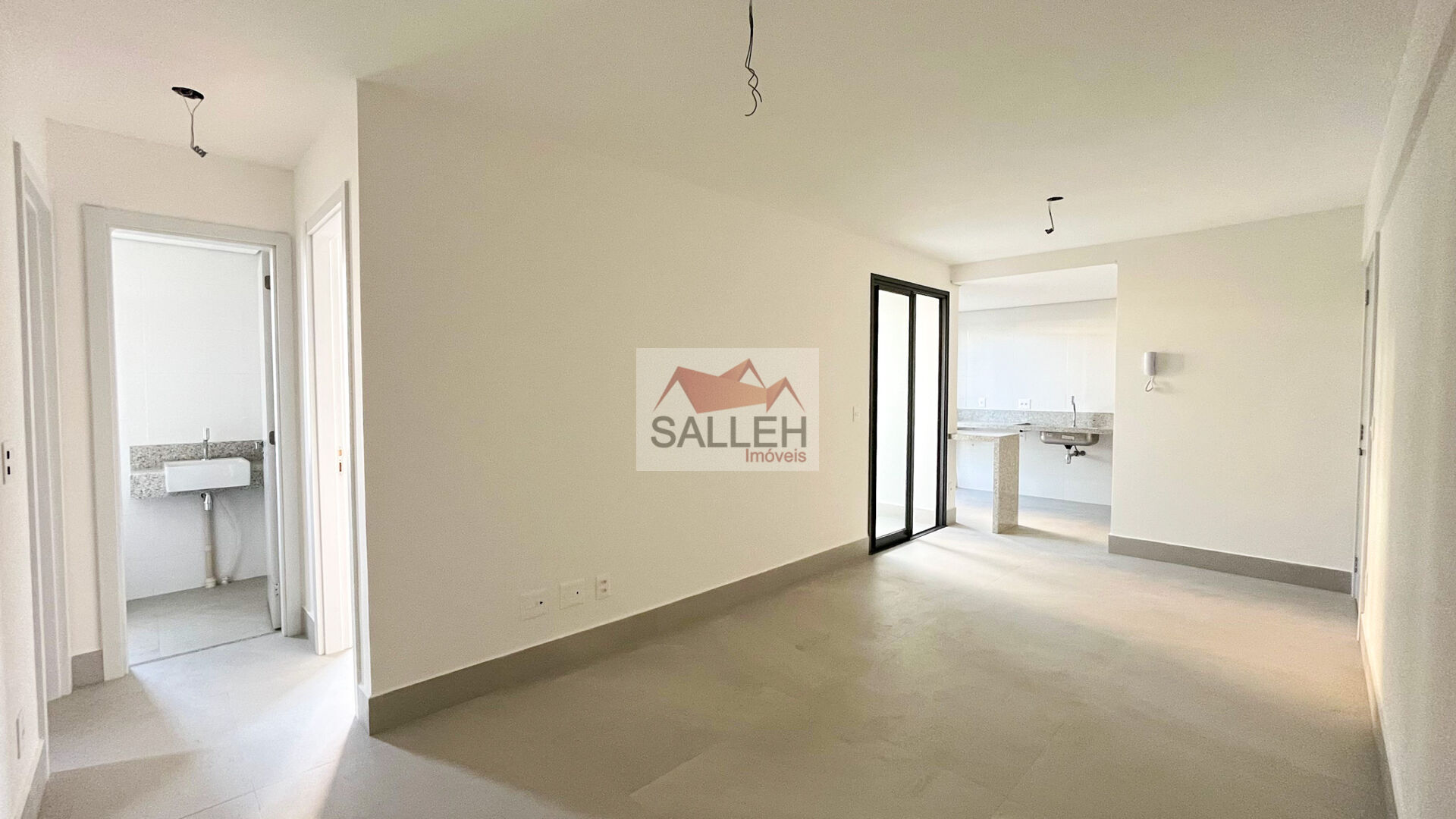 Sala ampla para dois ambientes, com varanda integrada, cozinha americana com bancada em granito, totalmente integrada à sala, 02 quartos com piso vinílico (que reduz ruídos) e janelas venezianas blackout, sendo 01 suíte com varanda e espaço para closet, banheiros (social e suíte) com acabamento premium em porcelanato e bancadas em granito, varanda com área de serviço, medição individualizada de água e gás e porcelanato na cozinha, área de serviço, varanda e circulação.