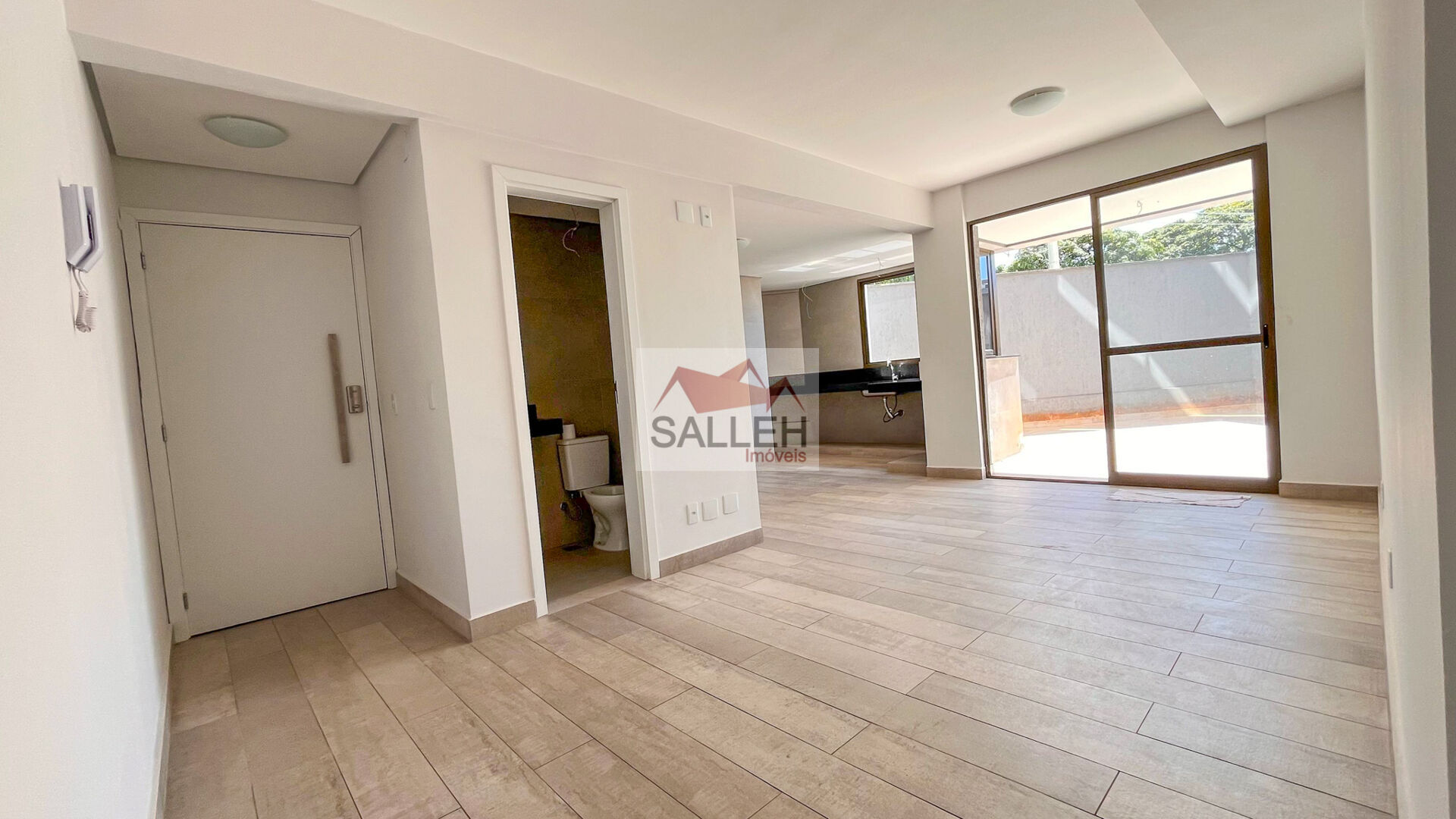 Piso em porcelanato em todo apartamento.