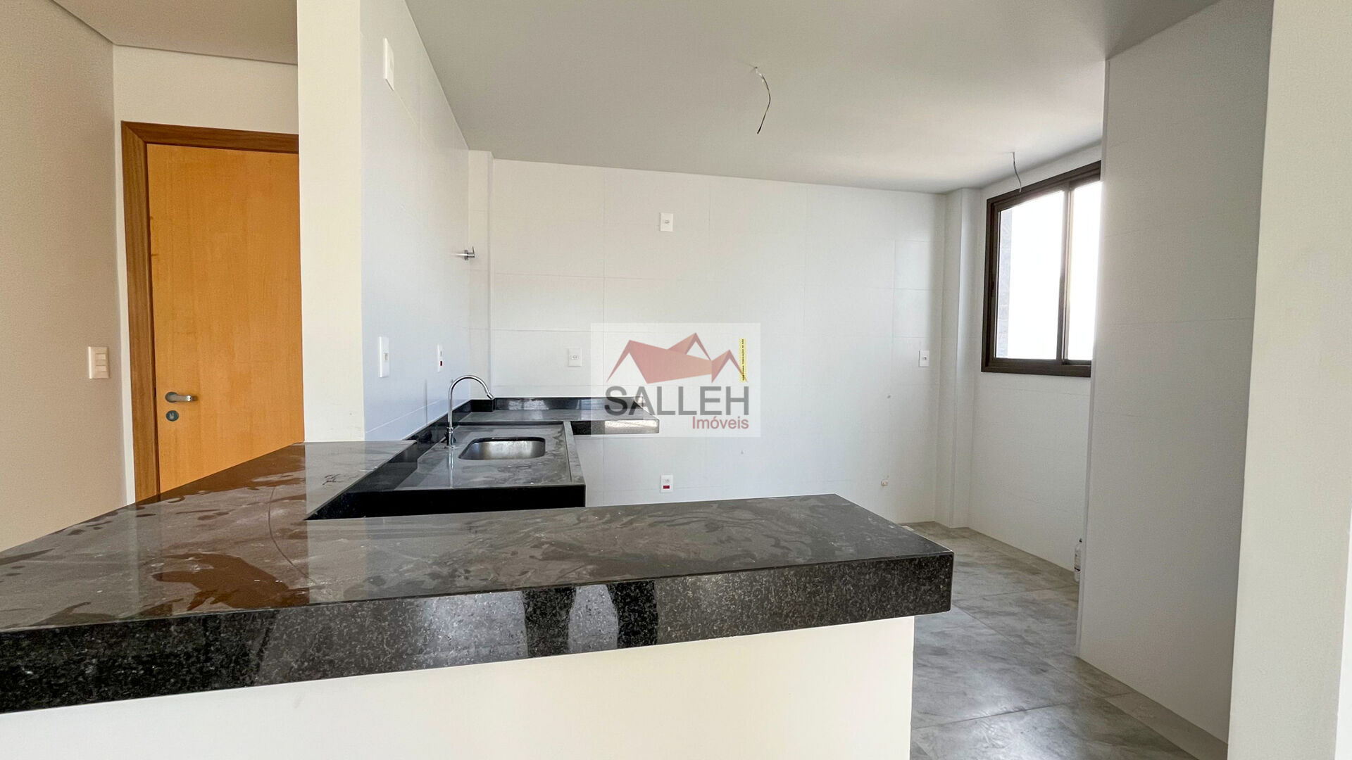 Sala espaçosa com piso porcelanato com acesso a varanda privativa, 01 quarto amplo com piso porcelanato, banheiro social com pia em cuba e bancada em granito e varanda com pia em granito.