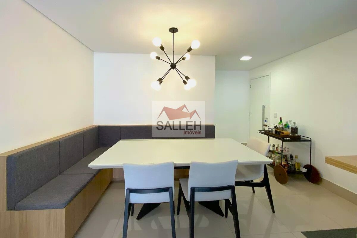 Sala ampla para dois ambientes, toda decorada, com piso em porcelanato, teto rebaixado e iluminação planejada, área privativa completa com hidromassagem e varanda gourmet, 02 quartos amplos, todos com piso em vinílico de madeira, teto rebaixado, iluminação planejada e armários, sendo 02 suítes com bancada em granito, armários, espelho e box em blindex, cozinha com piso e bancada em granito, armários planejados e coifa, integrada à varanda gourmet, banheiro social com espelho, bancada em granito, armários e box em blindex, lavabo e área de serviço com tanque, integrada à varanda gourmet.