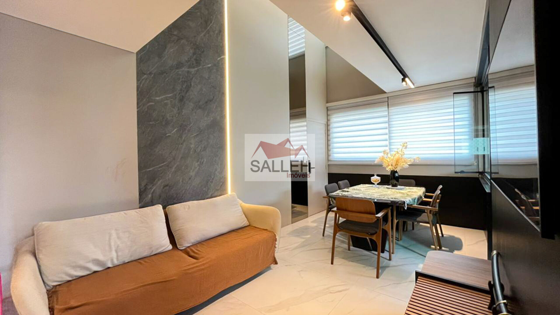 2 Pavimento: Sala ampla de TV, toda decorada, com piso em porcelanato e iluminação planejada, lavabo com bancada em granito, pia em cuba de apoio e espelho, área privativa completa e decorada, com bancada e pia em granito, deck e jacuzzi