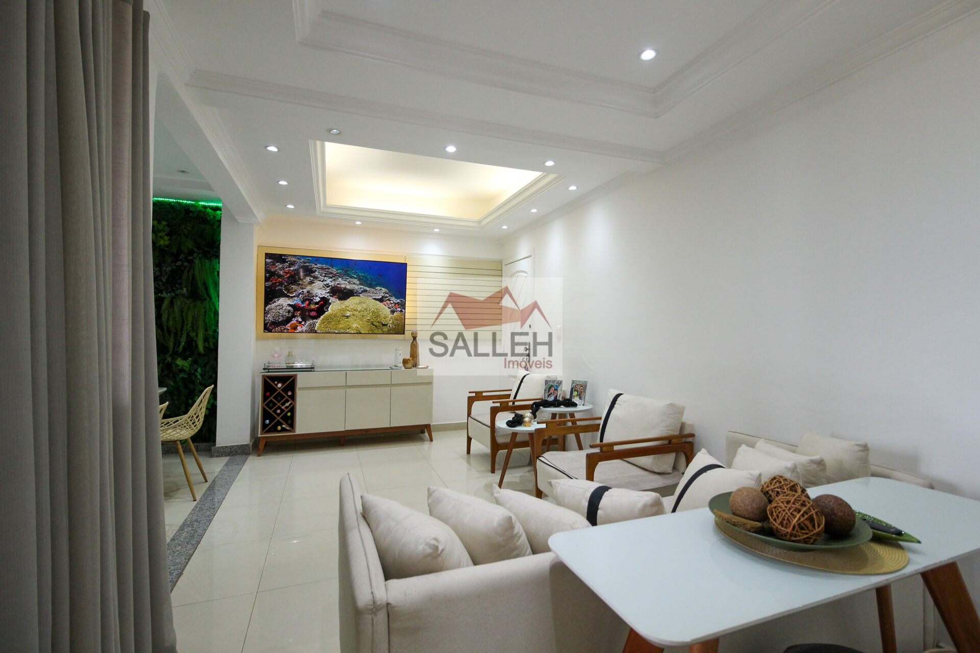 Sala ampla para dois ambientes com teto em gesso/sanca rebaixado e iluminação planejada, 03 quartos com armários planejados e piso em porcelanato, sendo uma suíte com box em blindex, armário, pia em granito e espelho. banheiro social com box em blindex, armário, pia em granito e espelho, cozinha com armários planejados, bancada em granito e piso em cerâmica e área de serviço com bancada em granito.