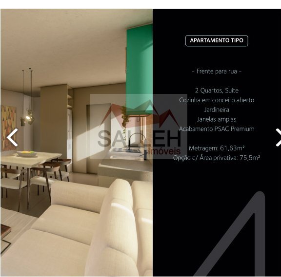 Ótimo apartamento com área privativa, sendo: sala para 02 ambientes com piso em porcelanato, 02 quartos com piso em porcelanato, sendo uma suíte com piso em porcelanato, banho social com piso em porcelanato, cozinha com piso com bancadas em granito e piso em porcelanato, área de serviço com piso em porcelanato.