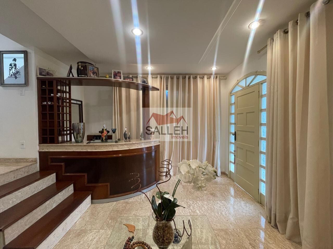 2º Pavimento: 02 salas com piso em mármore, teto rebaixado em gesso, projeto luminotécnico e scotch bar, 02 quartos confortáveis com piso laminado e armários, 02 banhos sociais com excelente acabamento, espelho e box em blindex, cozinha com piso e revestimento em cerâmica, bancadas em granito, armários planejados e despensa, área de serviço independente, com piso e revestimento em cerâmica e bancada em granito, espaço gourmet com piso em porcelanato, bancadas em granito, armários, fogão a lenha, churrasqueira e piscina com aquecimento solar.