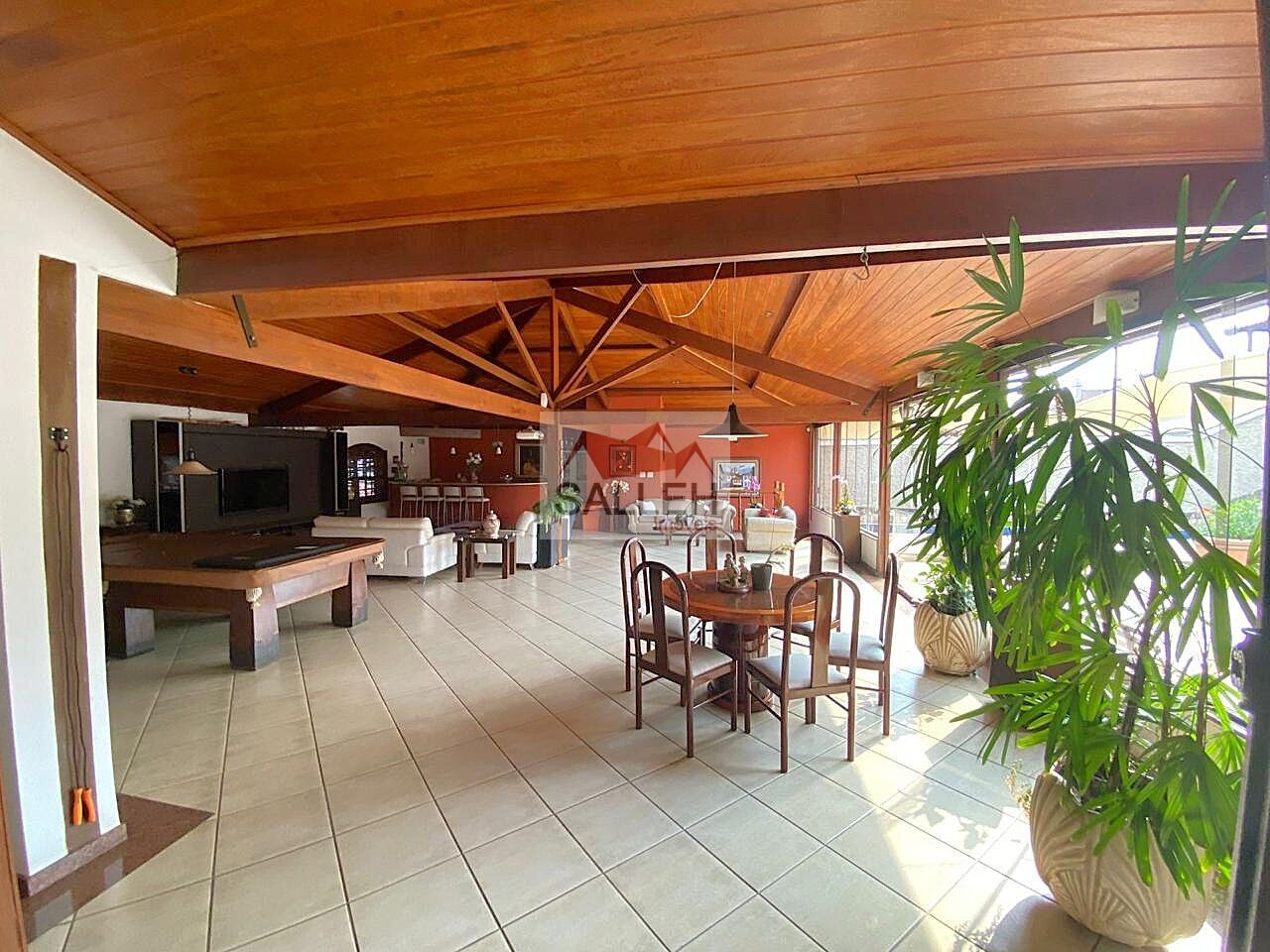 Sala ampla para 4 ambientes, com acabamento em madeira no teto, iluminação planejada, bar com bancada em granito e armários, além de vista privilegiada para a piscina, salas de estar e jantar com piso em tábua corrida, proporcionando elegância e aconchego aos ambientes, 05 quartos, sendo 4 com armários planejados, 3 suítes – uma delas com hidromassagem e closet, cozinha espaçosa com armários planejados, bancadas e piso em granito, 02 lavabos com um excelente acabamento, área de serviço independente e dependência completa de empregada (DCE), área de lazer completa com piscina em raia, sauna com capacidade para até 8 pessoas e espaço gourmet com churrasqueira, sistema de segurança completo com alarme, cerca elétrica, interfone e CFTV monitorado por celular.