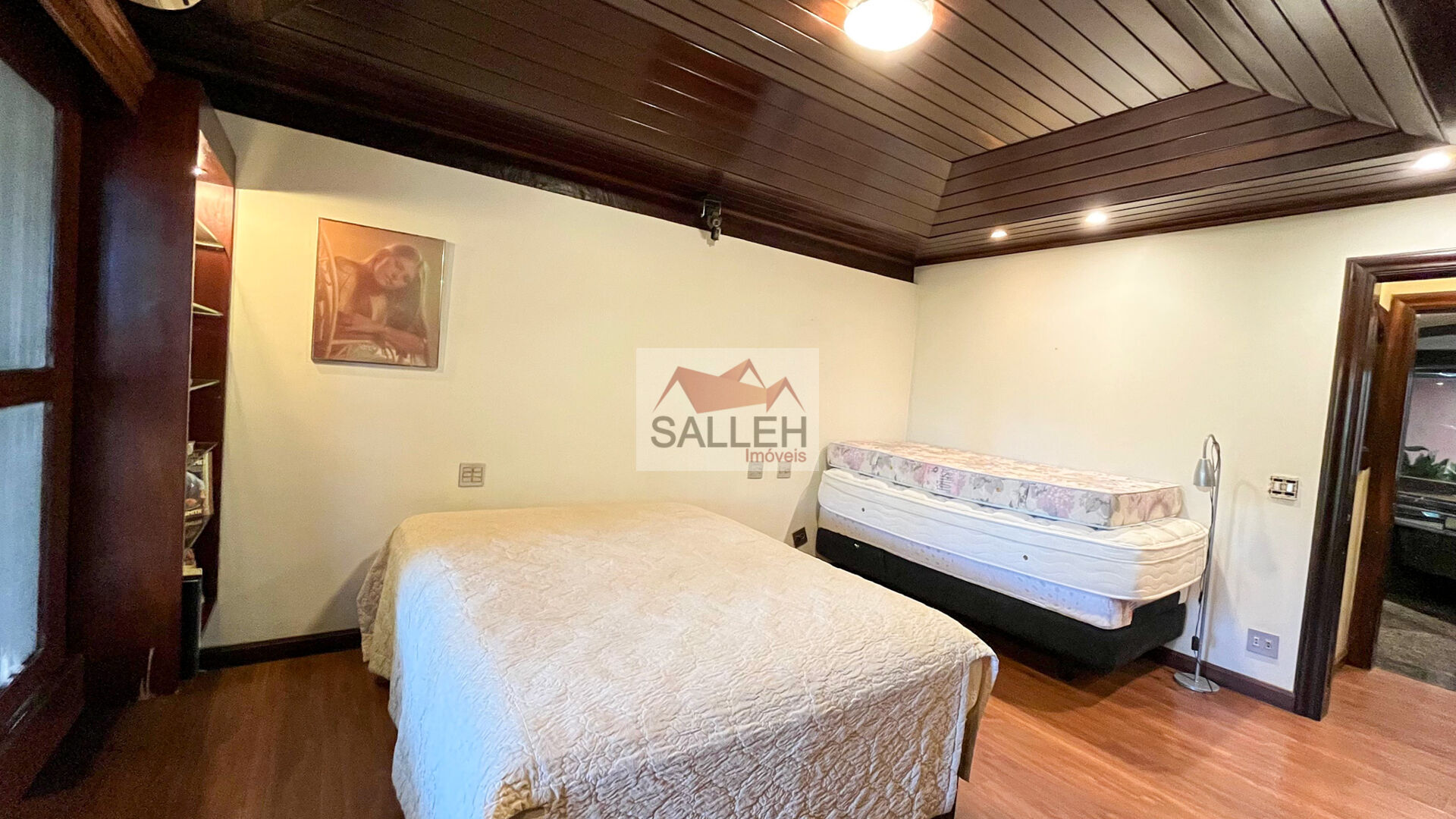 04 suítes com closet e ar-condicionado, sendo 01 suíte máster com hidromassagem e jardim de inverno, roupeiro, sala para 02 ambientes com lareira e acesso a quintal nos fundos, área externa, piscina com cascata em pedras, pergolado e jardim exuberante, orquidário, oficina doméstica e escritório completo com 03 salas, banheiro e cozinha.